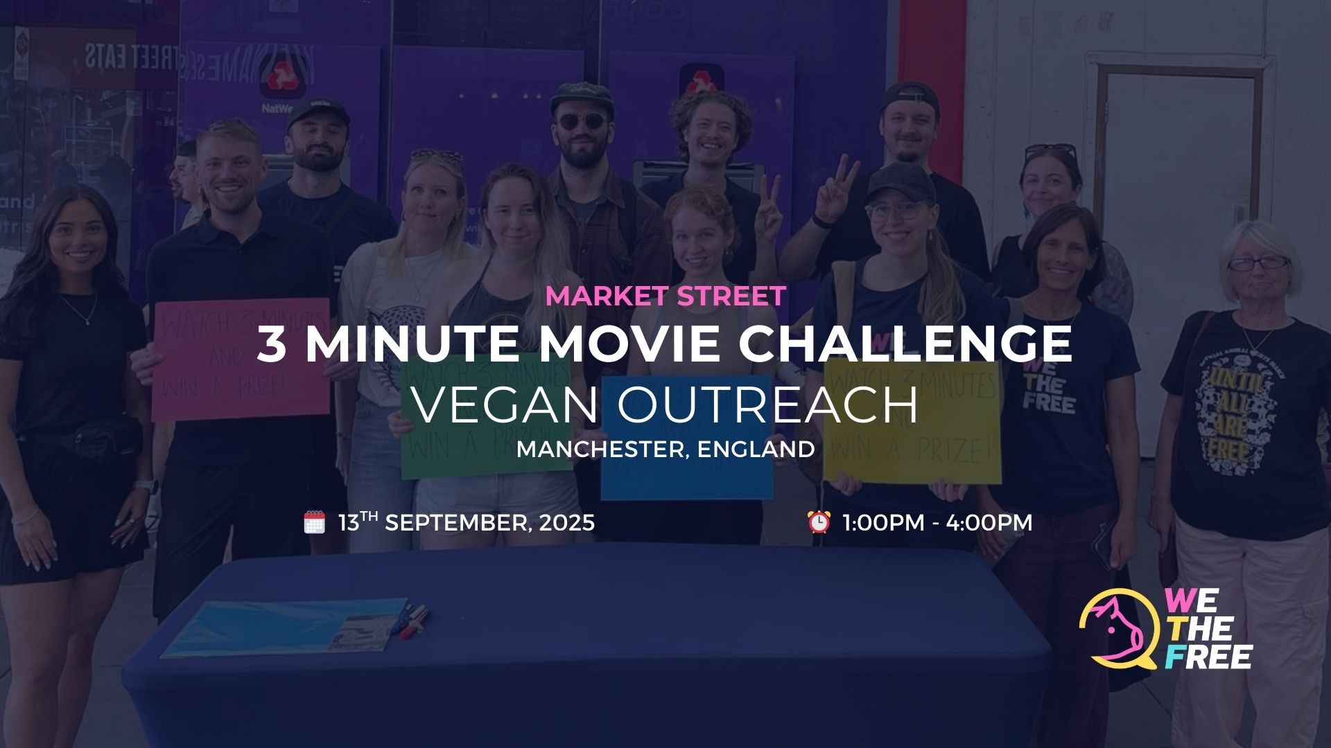 Discover the truth behind animal agriculture in just three minutes. At this unique event, members of the public are invited to watch a short, powerful film that reveals standard industry practices. In return, they receive a free vegan treat. It’s an effective and engaging way to spark meaningful conversations about animal rights.